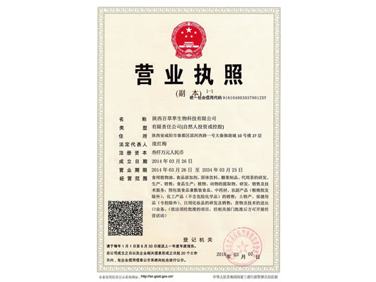 陜西百草萃生物科技有限公司,位于陜西省咸陽市秦都區(qū)濱河西路1號大秦御港城,公司成立于1996年,主要從事天然植物種植、研發(fā)、生產(chǎn)、加工、銷售為一體的高科技企業(yè)。主營醫(yī)藥原料、保健品原料、化妝品原料,精細化工原料。公司致力于人類健康保護事業(yè)“ 以科技為動力,以質量求生存” 的本質,依托陜西高新科技技術人才和科研優(yōu)勢,已形成多學科、全方位、高層次的技術管理精英團隊。充分利用秦巴山區(qū)的天然藥物資源,歷經(jīng)多年發(fā)展為打造百草萃生物品牌奠定了基礎。